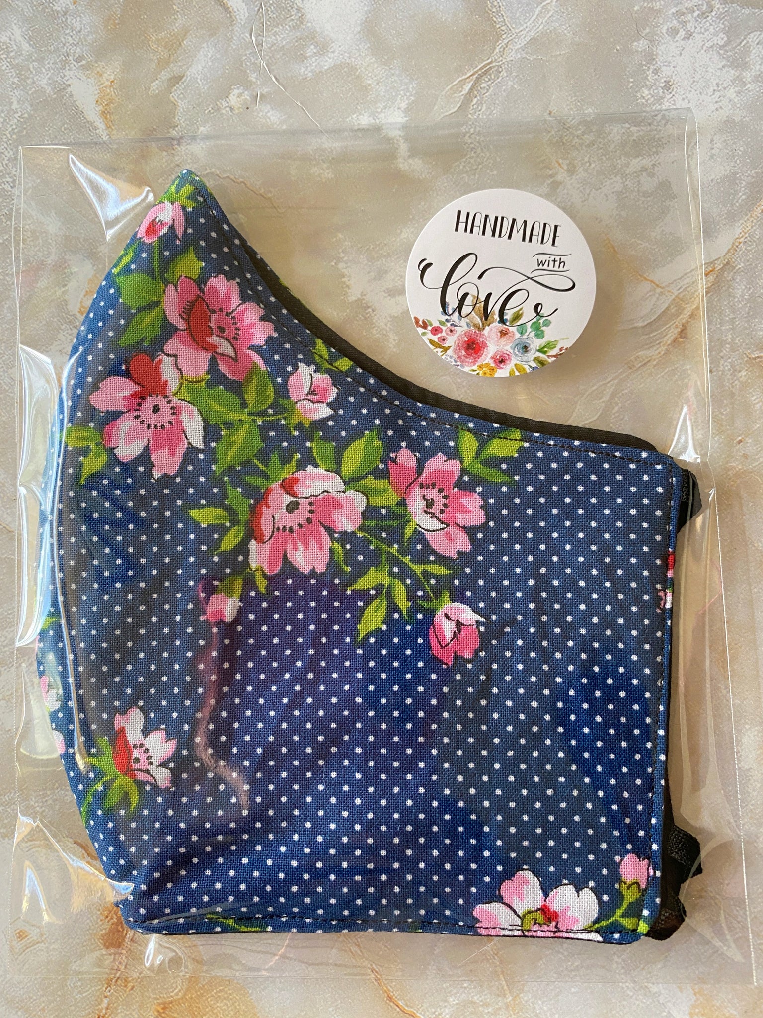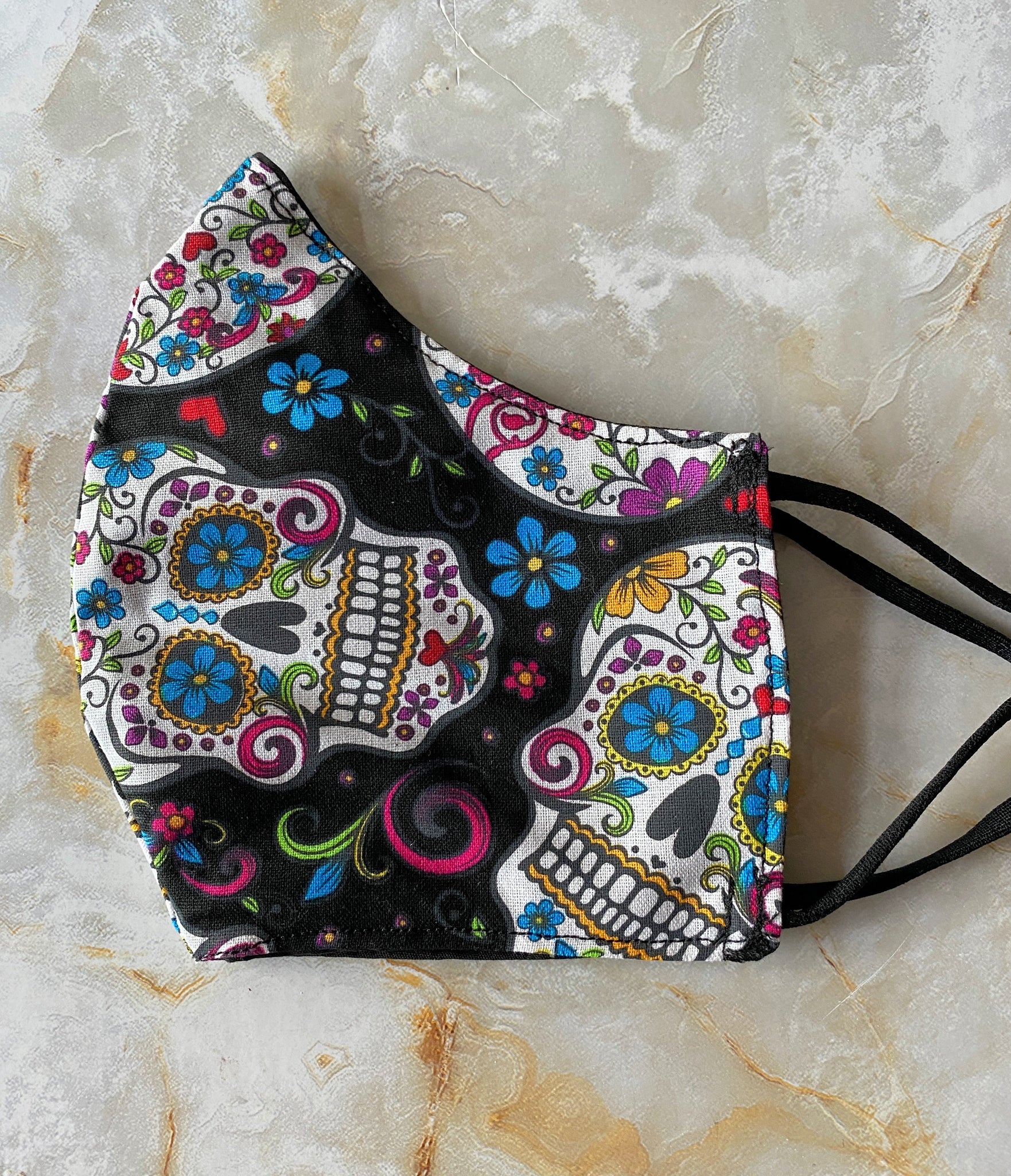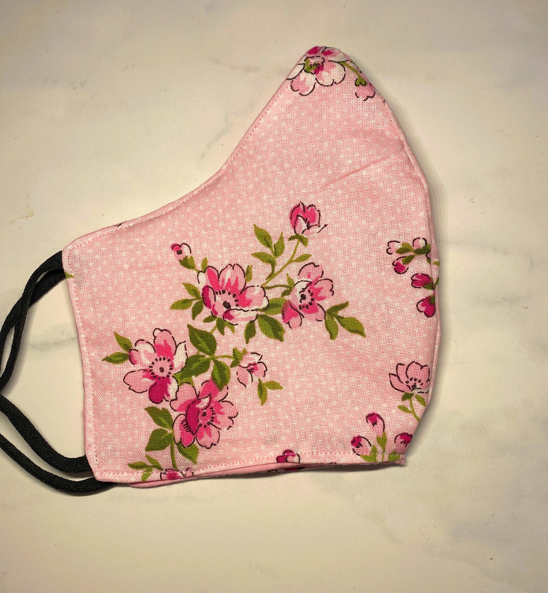 Handmade & made to order facemask using 3 layers of  100% cotton fabric. Adjustable ear elastic. Fits comfortably. Does not have nose wire or slots for nose wire.