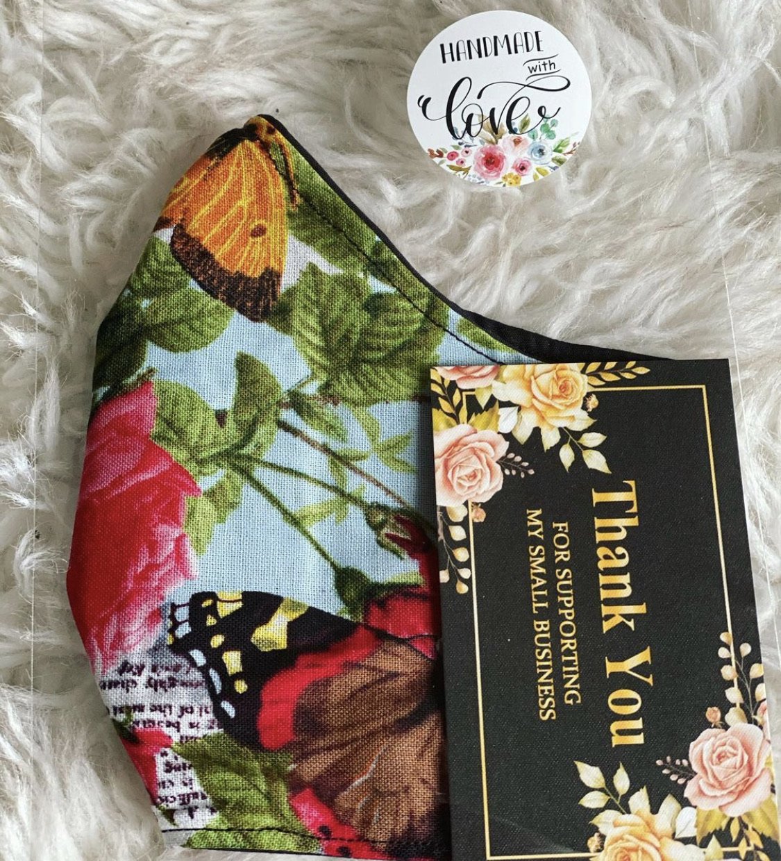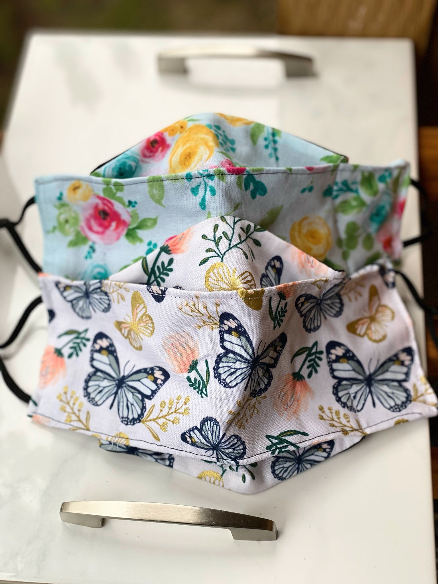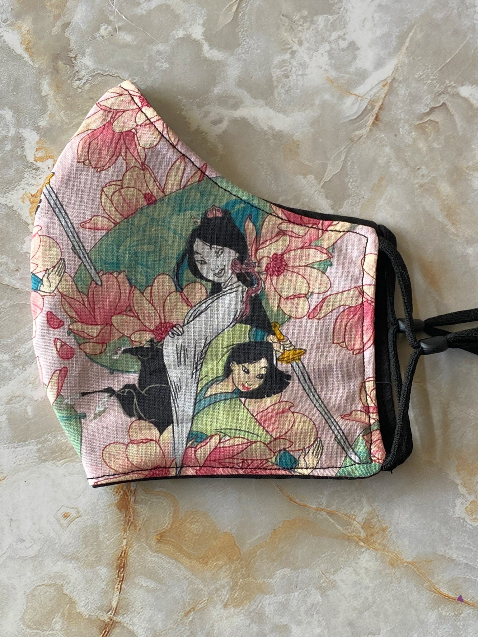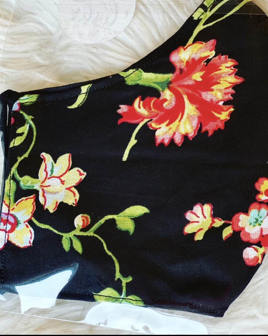 Handmade & made to order facemask using 3 layers of  100% cotton fabric. Adjustable ear elastic. Fits comfortably. Does not have nose wire or slots for nose wire.